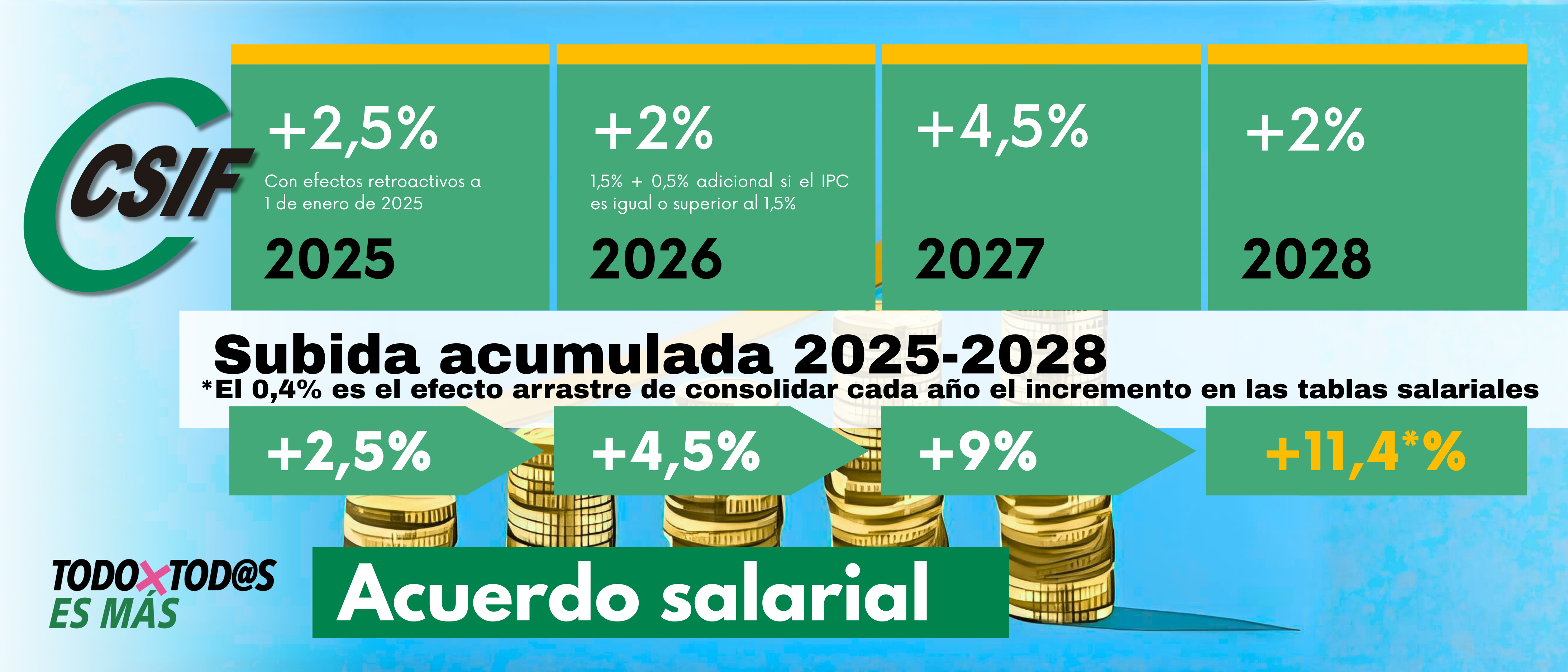 CSIF logra el fin de la congelación salarial y la recuperación progresiva de poder adquisitivo dentro de un acuerdo que también contempla mejoras en las condiciones laborales.