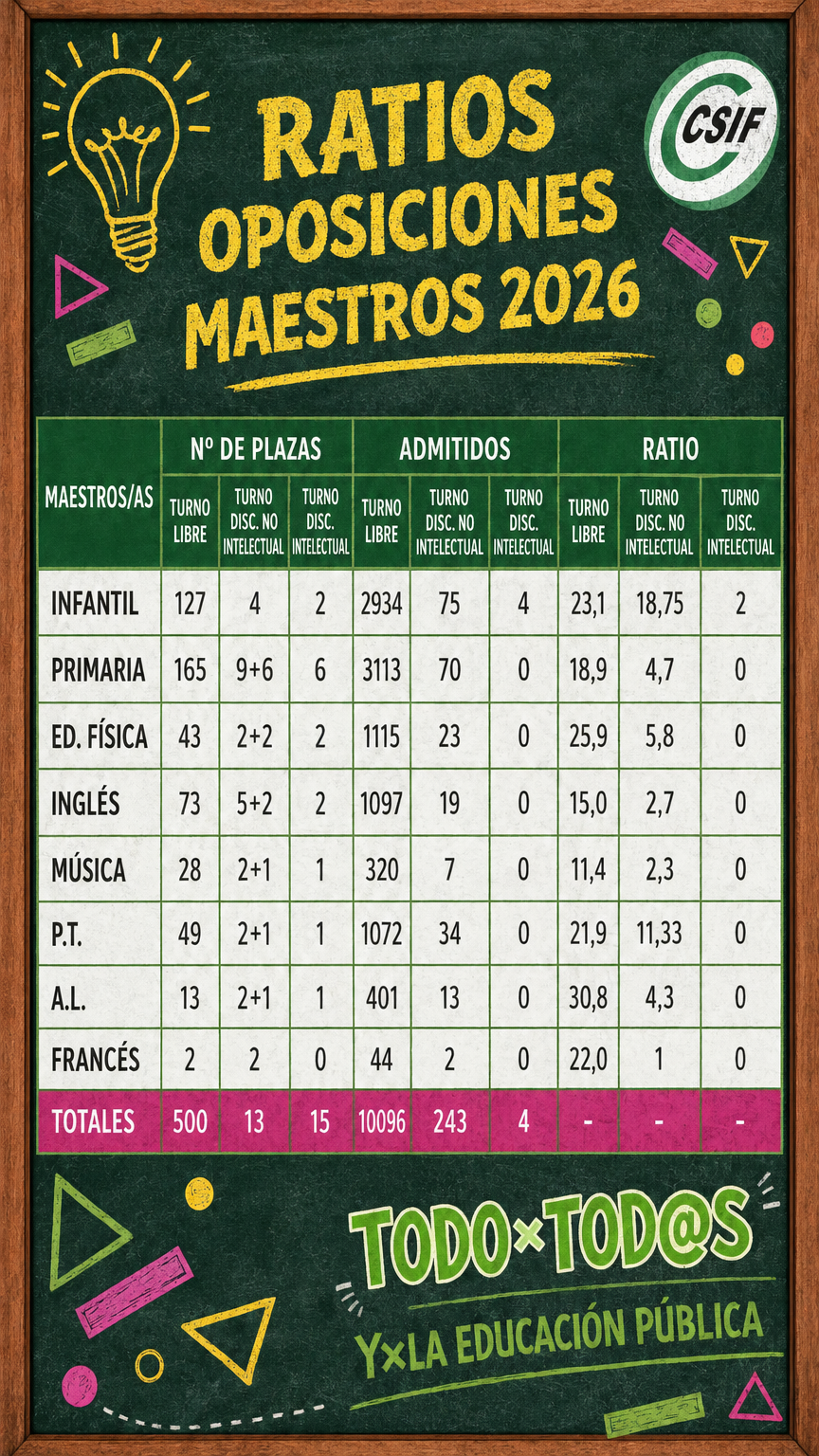 Publicadas las resoluciones y listados definitivos de admitidos y excluidos correspondientes al concurso - oposición para el ingreso en el Cuerpo de Maestros 2026, por el turno libre y por el turno de personas con discapacidad, y al procedimiento para la adquisición de nuevas especialidades en el referido Cuerpo de Maestros. Contra la resolución definitiva de admitidos y excluidos los aspirantes podrán interponer recurso de alzada ante el Consejero de Educación, Cultura y Deportes en el plazo de un mes.