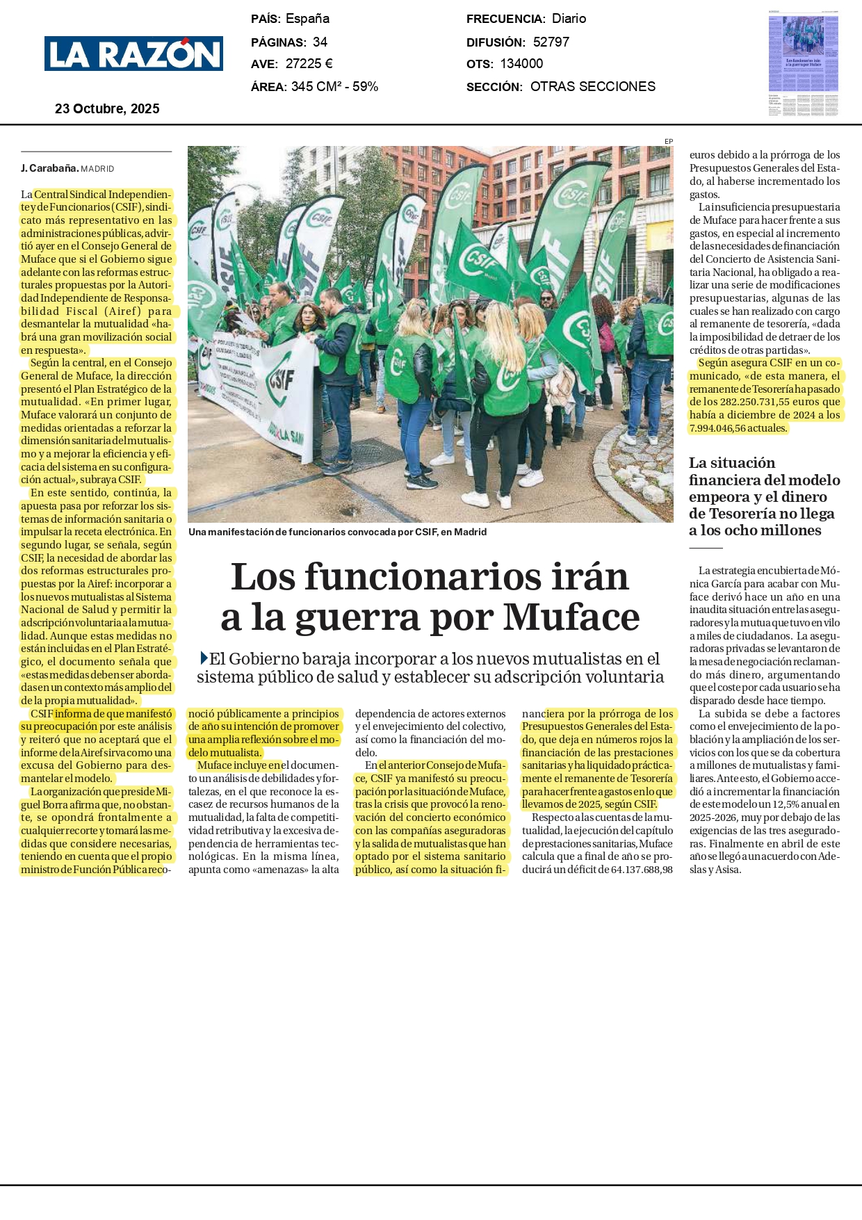 MUFACE: UNA VEZ MÁS, CSIF EN SOLITARIO DEFENDIENDO LO QUE OTROS ABANDONAN
