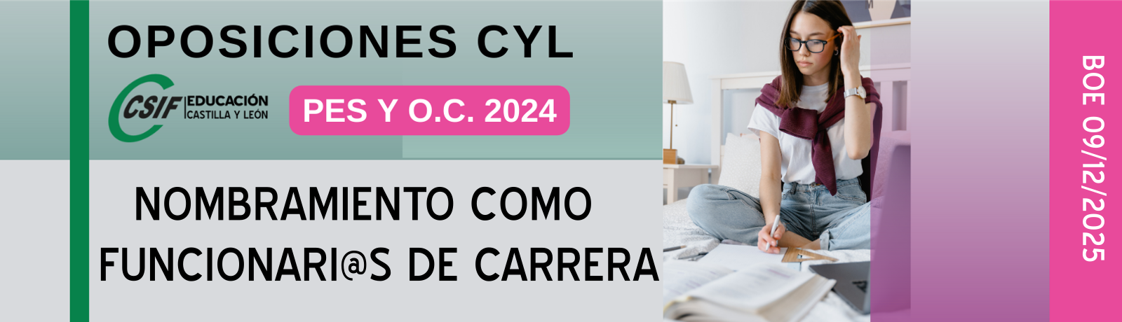 Oposiciones PES y O.C. 2024 CyL. Nombramiento como funcionarios de carrera en el BOE 09/12/2025.
