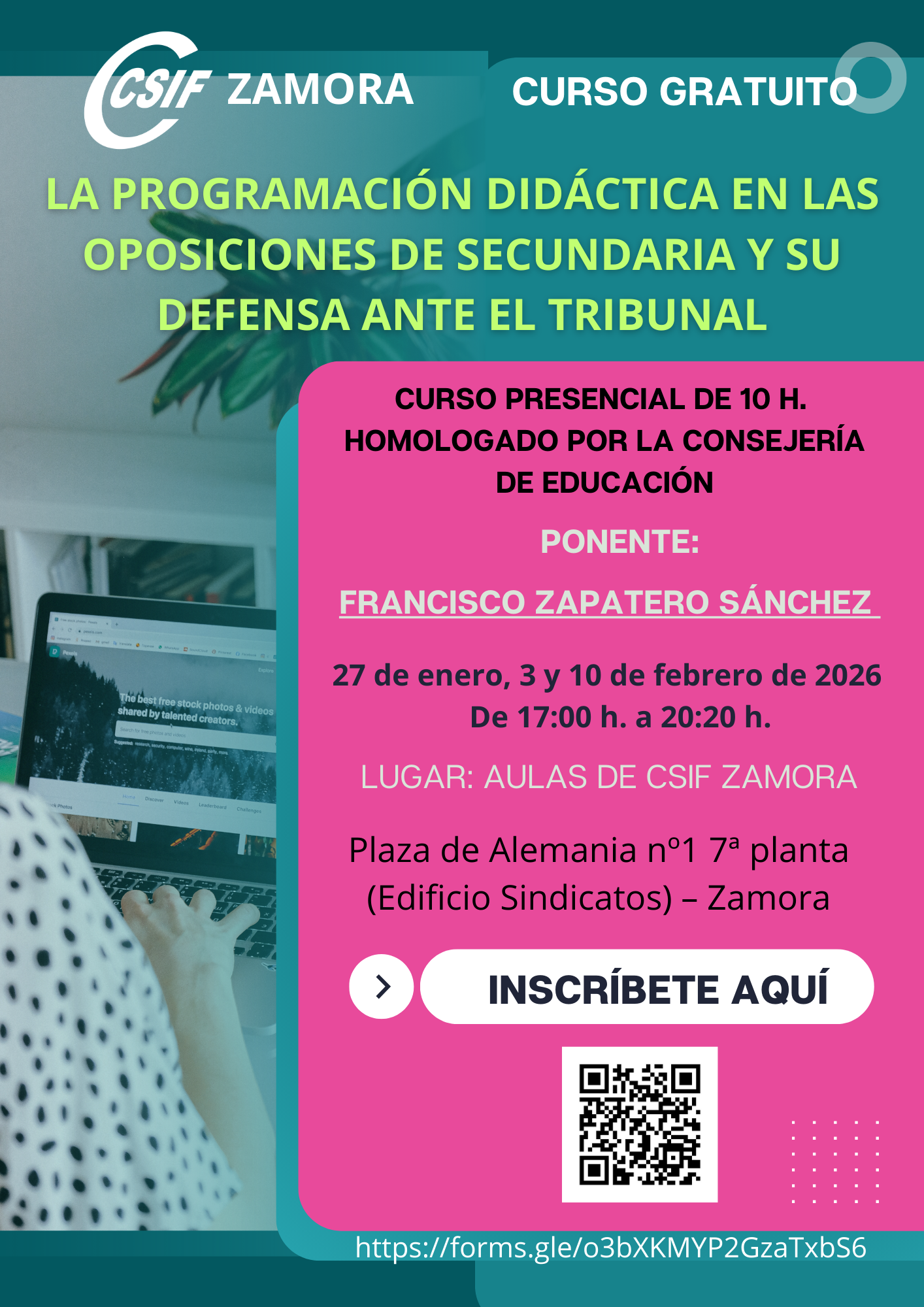 Curso homologado gratuito presencial en Zamora: La programación didáctica en las oposiciones de secundaria y su defensa ante el tribunal.