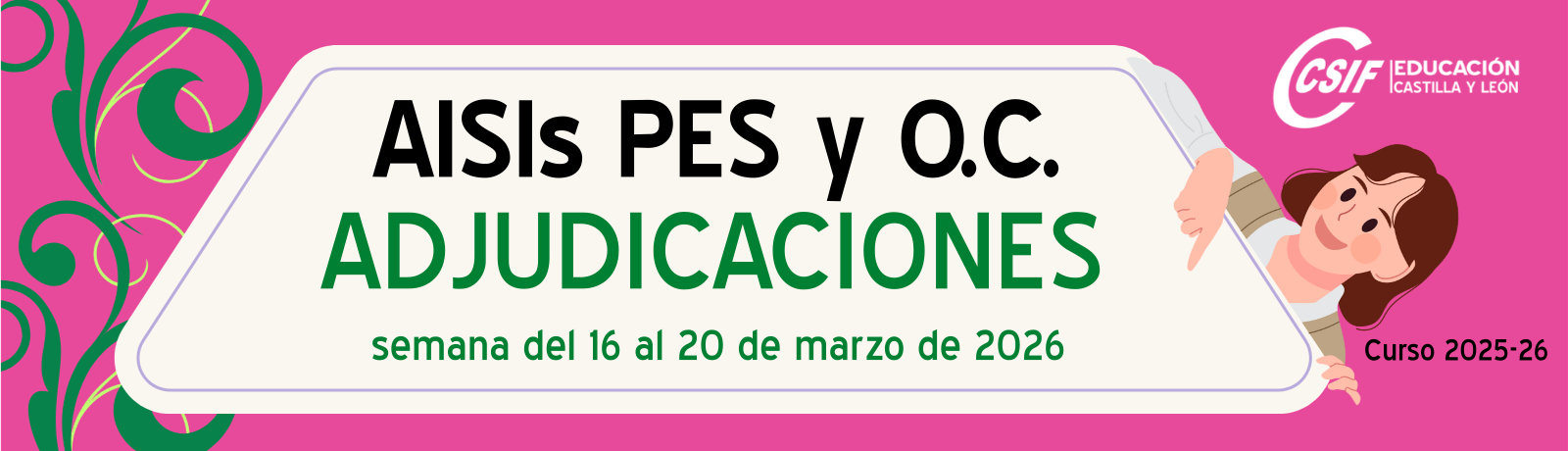 Interinos PES y otros cuerpos: Curso 2025-2026. AISI semana del 16 al 20 de marzo de 2026. Adjudicaciones.