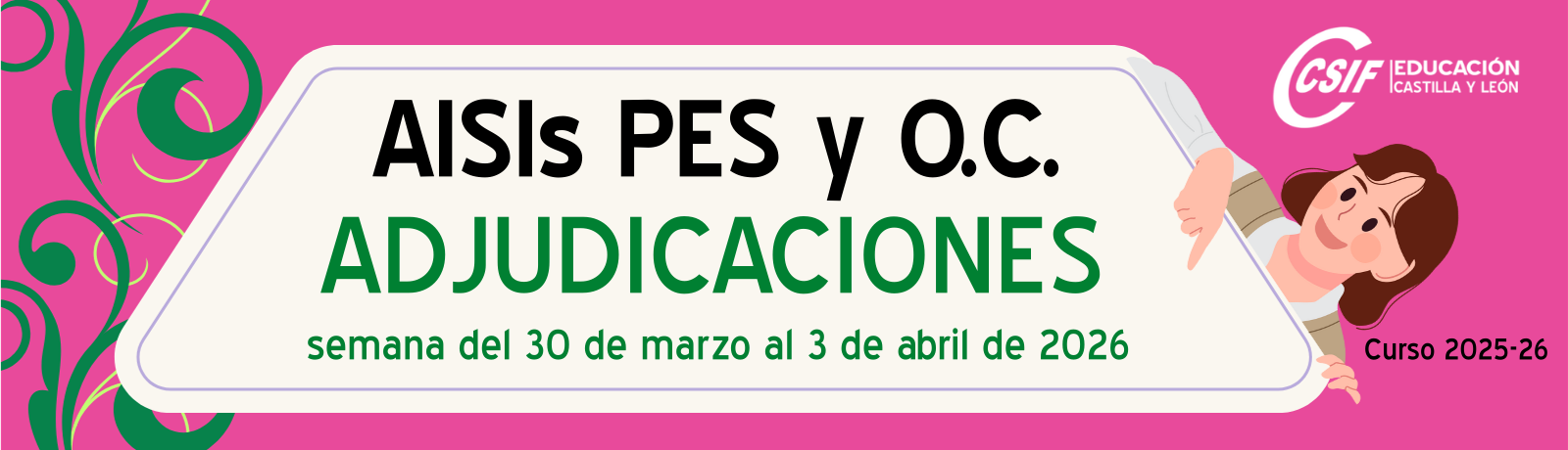 Interinos PES y otros cuerpos: Curso 2025-2026. AISI semana del 30 de marzo al 3 de abril de 2026. Adjudicaciones.