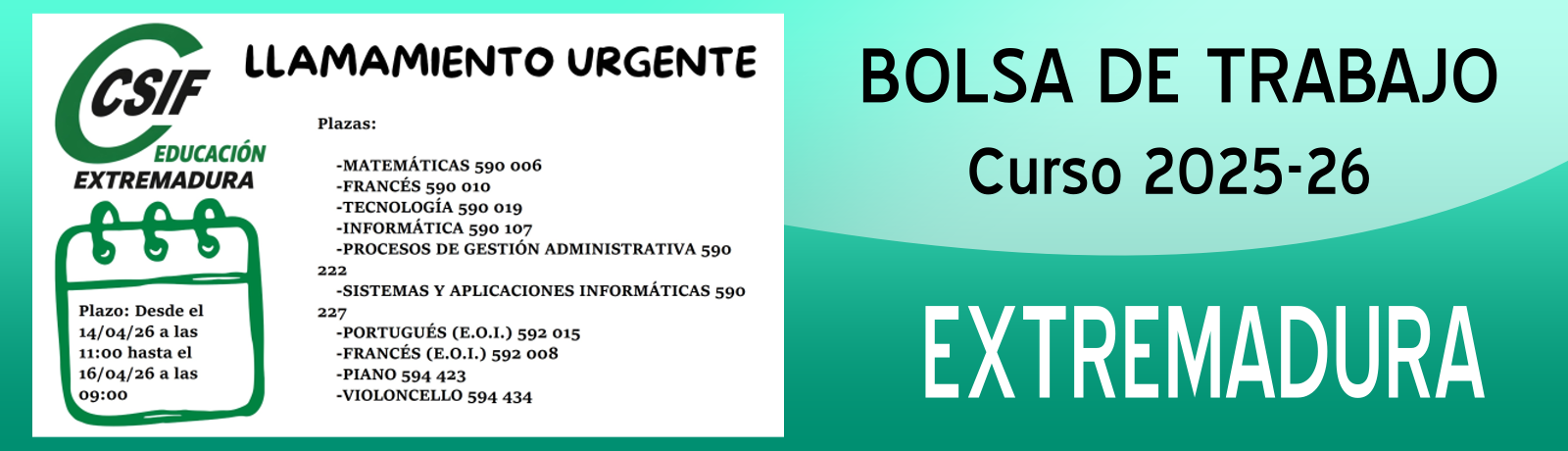 Extremadura. LLAMAMIENTOS URGENTES: varias especialidades.