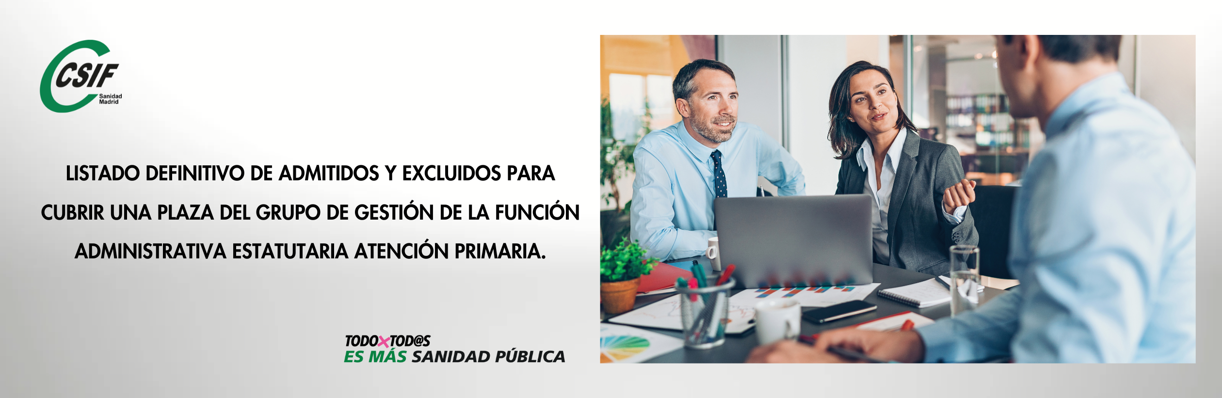 Listado definitivo de admitidos y excluidos para cubrir una de Grupo de Gestión de la Función Administrativa Atención Primaria.