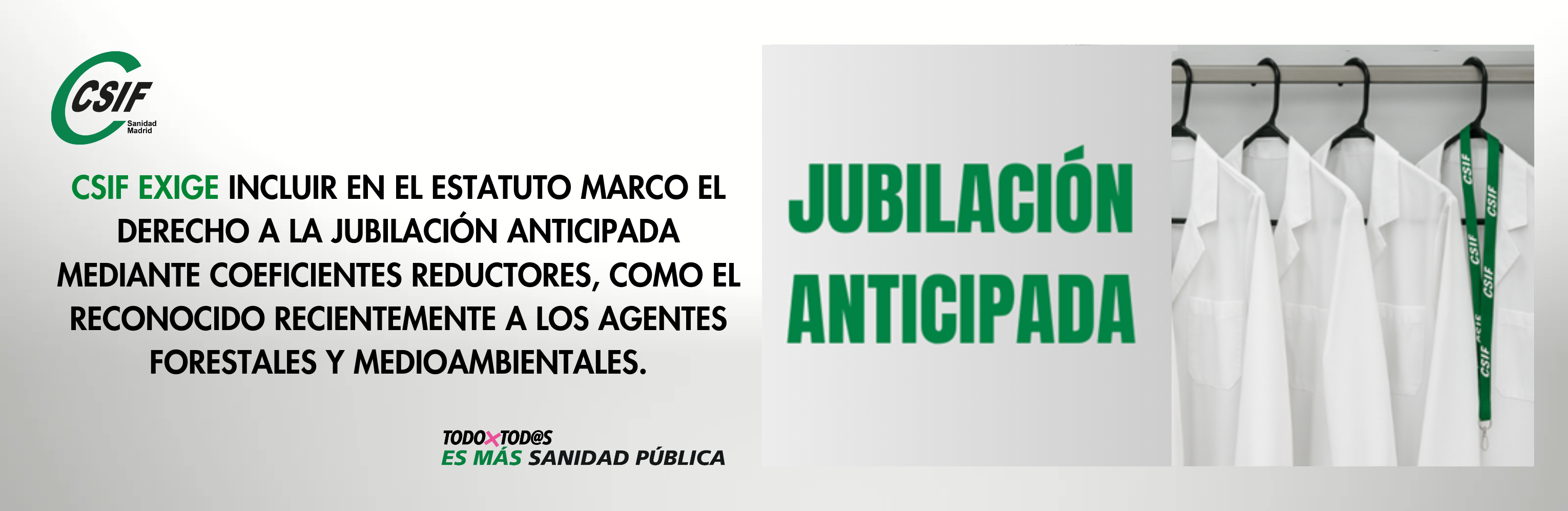 CSIF, ha exigido en la Mesa del Ministerio de Sanidad que el nuevo Estatuto Marco incluya expresamente el derecho a la jubilación anticipada del personal estatutario mediante la aplicación de coeficientes reductores en la edad de jubilación.