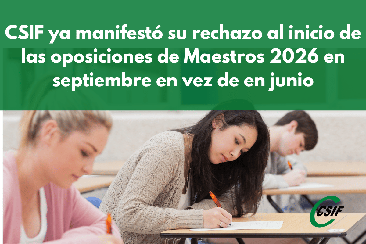 La Central Sindical Independiente y de Funcionarios (CSIF) recuerda que ya mostró su firme rechazo al inicio de las oposiciones del cuerpo de maestros en el mes de septiembre, una decisión que la Conselleria de Educación ha confirmado hoy al publicarse la convocatoria en el DOCV. La base 6.1.a establece que la primera prueba de la fase de oposición comenzará a partir del 1 de septiembre de 2026, pese a que el sindicato había defendido en diferentes reuniones mantenidas con la Conselleria el mantener las fechas tradicionales de junio para comenzar el proceso selectivo.