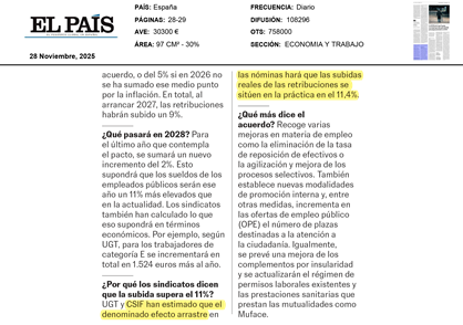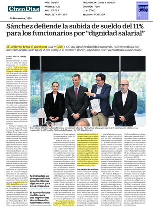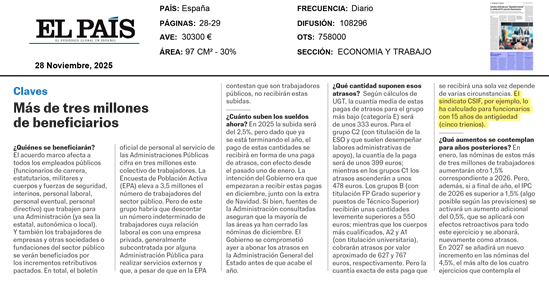 CSIF tiene hoy una destacada presencia en los medios de comunicación, tanto nacionales como regionales, tras la firma de ayer con Función Pública, que ha vuelto a situar a nuestro sindicato en el epicentro informativo de la jornada