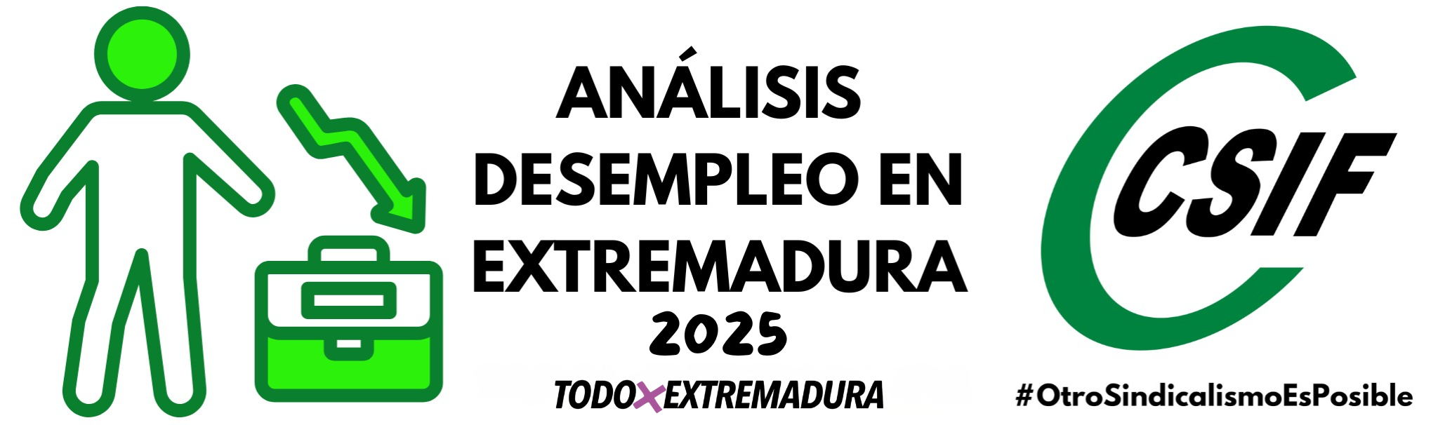 CSIF valora que el paro registrado en Extremadura haya descendido en ocho puntos en 2025 comparado con el año anterior, sumando ya ocho ejercicios consecutivos de bajada del desempleo y logrando la cifra más baja a cierre de año desde que hay registros, con 64.370 desempleados; al tiempo que la Seguridad Social experimentó un ligero incremento anual de afiliados en la región, del 0,98%.