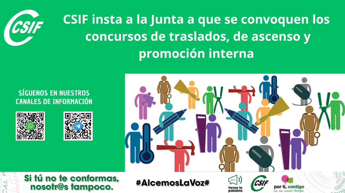 CSIF insta a la Junta a que se convoquen los concursos de traslado, de ascenso y promoción interna.