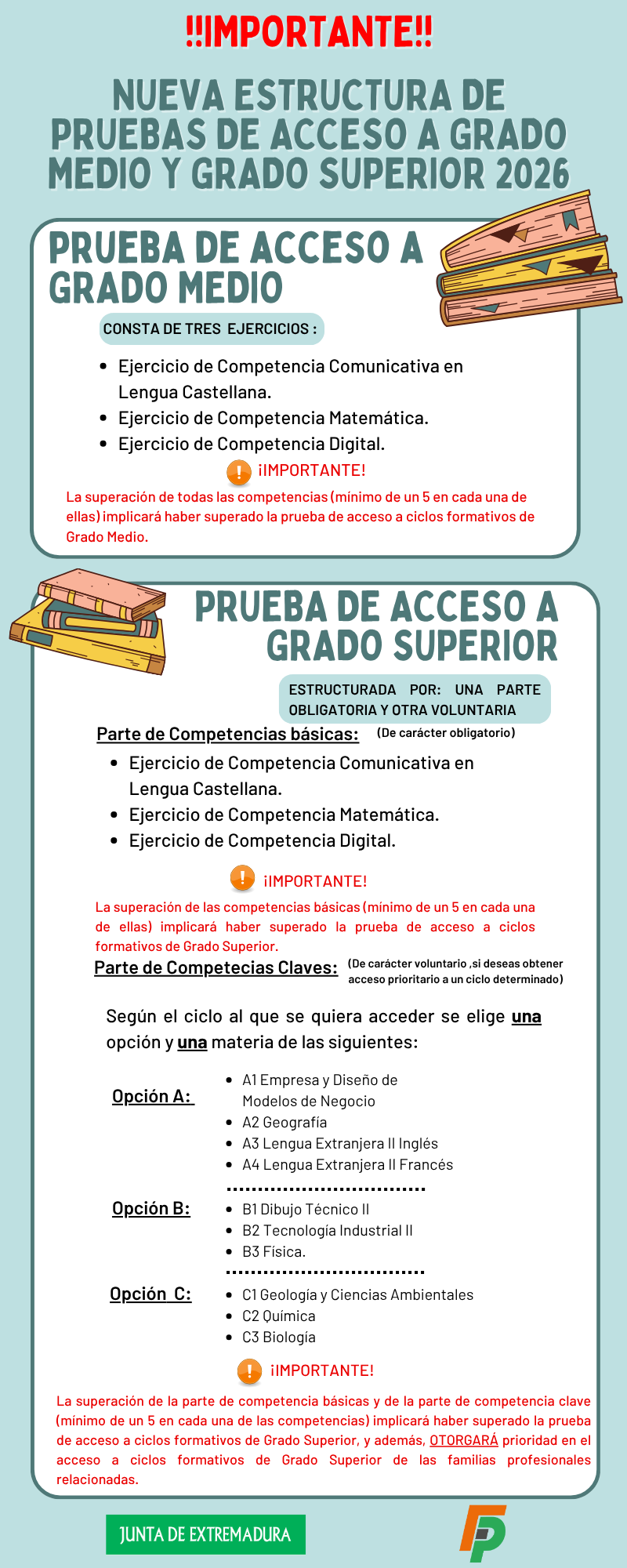 NUEVA ESTRUCTURA DE PRUEBAS DE ACCESO A CICLOS FORMATIVOS DE GRADO MEDIO Y GRADO SUPERIOR PARA EL 2026