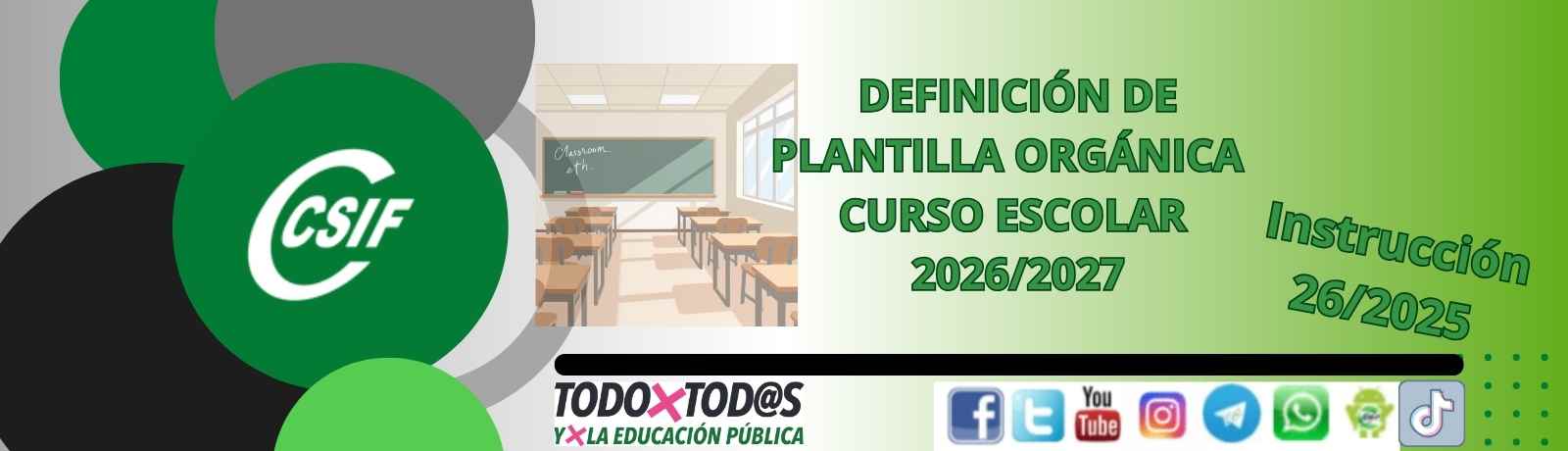 INSTRUCCIÓN Nº 26/2025, Plantilla orgánica de profesorado en Centros Educativos.