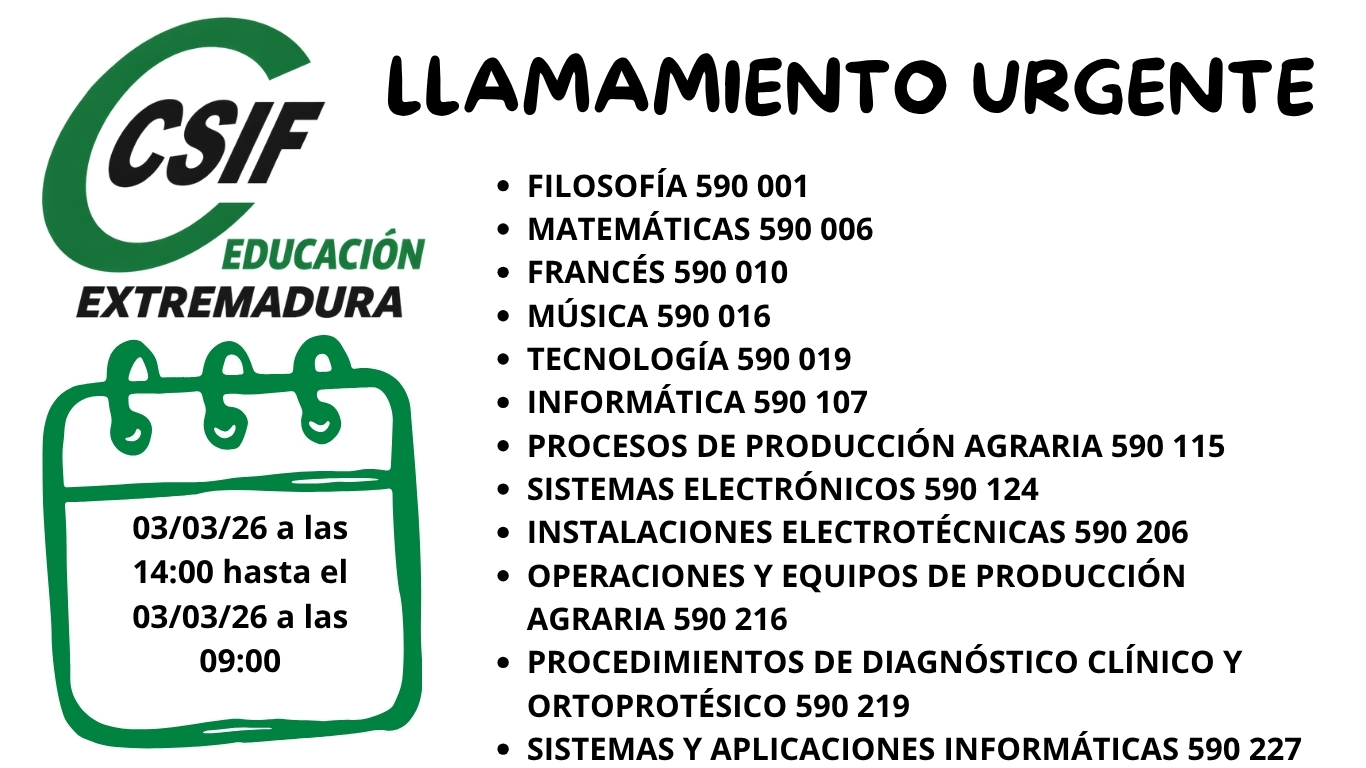 LLAMAMIENTO URGENTE: 03/03/2026.