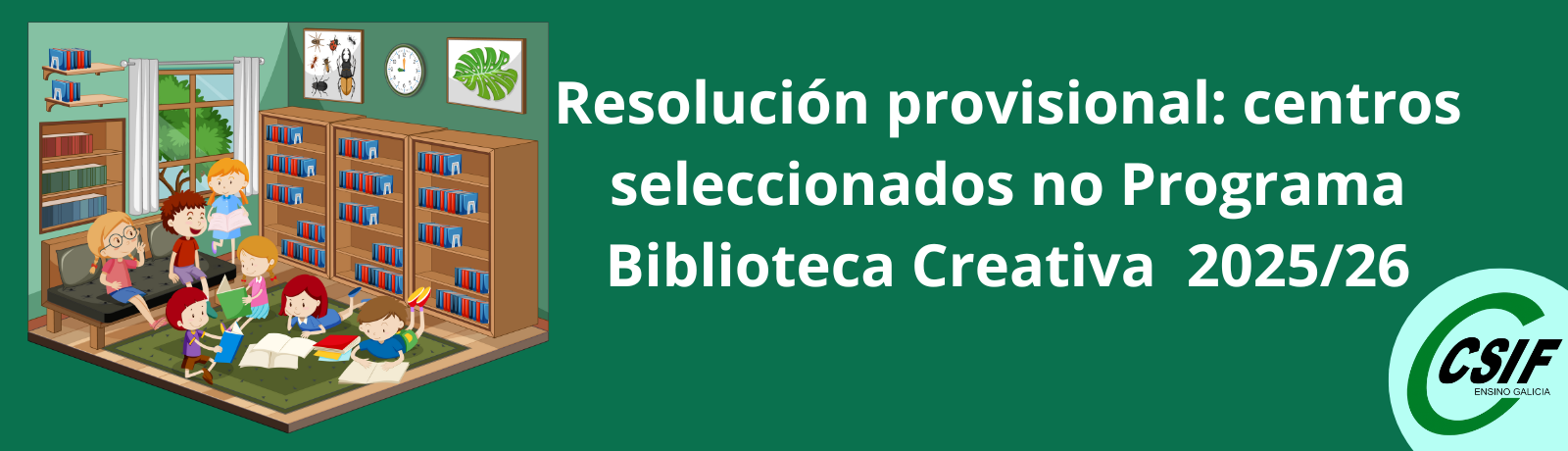 Resolución provisional de centros seleccionados na convocatoria do programa de Biblioteca Creativa para o curso 2025/26