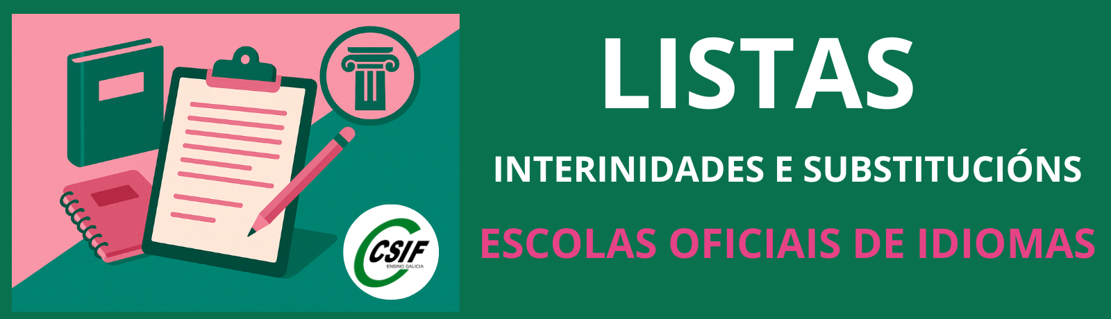 A Dirección Xeral de Centros e Recursos Humanos, ven de publicar a Resolución do 13 de outubro de 2025 pola que se convoca un procedemento para a elaboración das listas de interinidades e substitucións para impartir docencia en diversas especialidades do corpo de profesores de escolas oficiais de idiomas (592) (código de procedemento ED003A).
