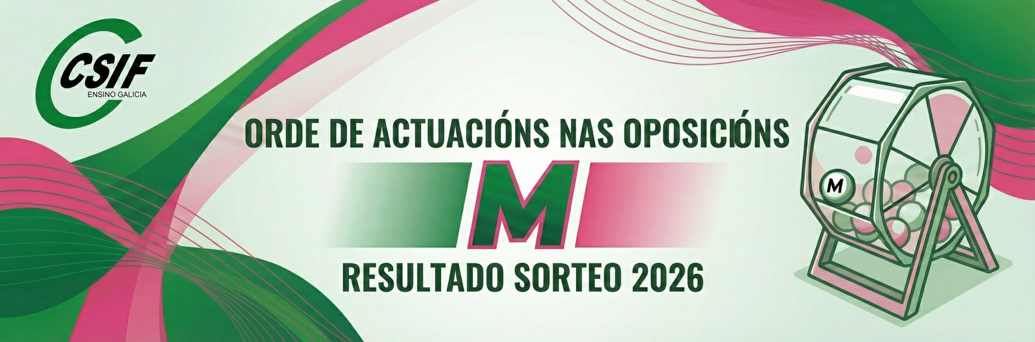 Conforme o resultado do sorteo, a orde de actuación das persoas aspirantes nos procesos de selección para o ingreso na Administración da Comunidade Autónoma de Galicia, correspondentes ao ano 2026, comezará por aquelas cuxo primeiro apelido comece pola letra «M».