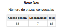 Del total de las plazas convocadas por el sistema de acceso libre, se reservarán 7 plazas para ser cubiertas por personas con un grado de discapacidad igual o superior al 33 %.