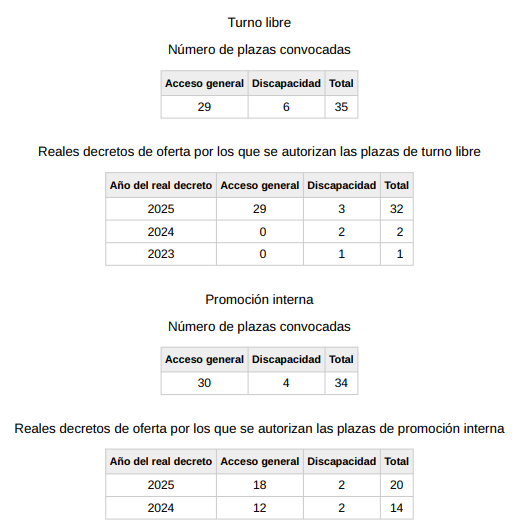 Las plazas convocadas se ajustan a lo dispuesto en el siguiente cuadro: