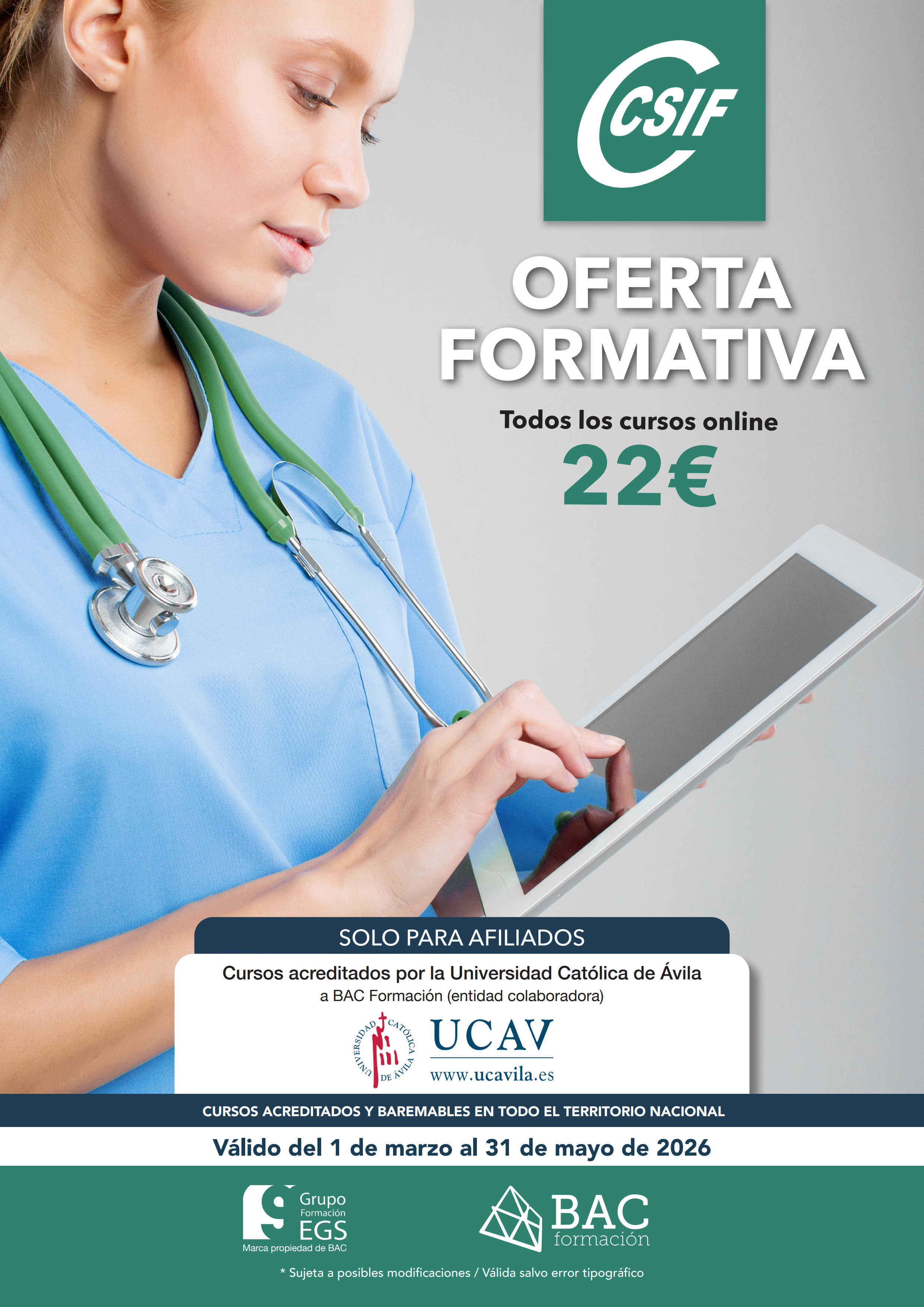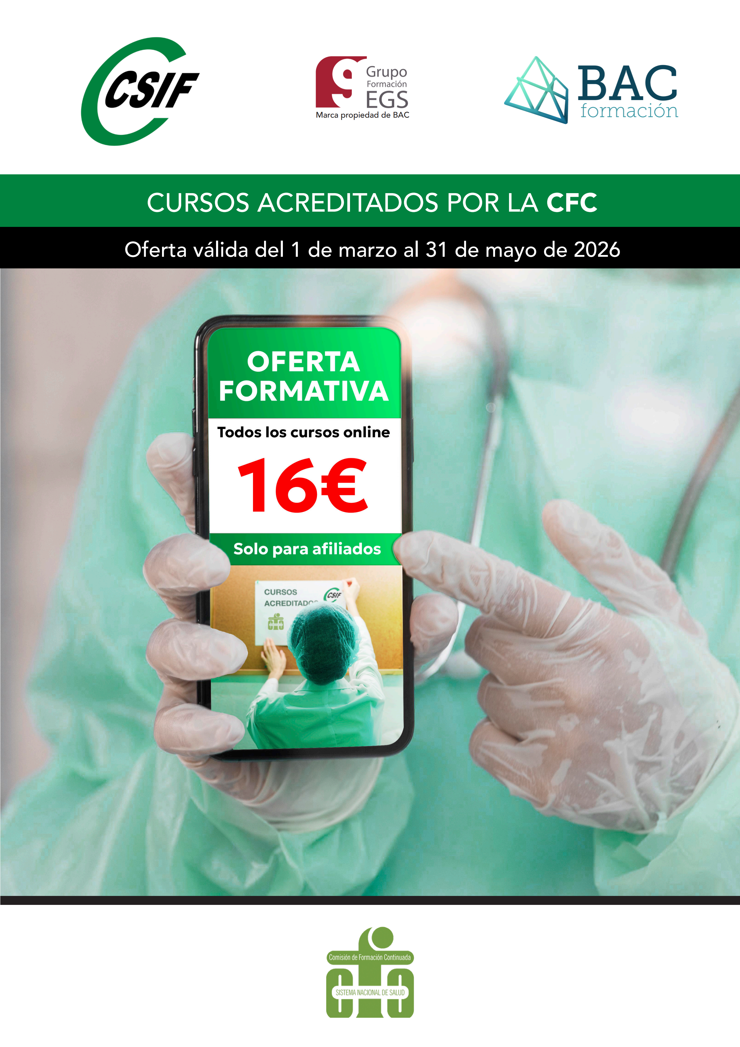 - Contacto para gestión de cursos: formacion.sanidad@csif.es, teléfono 915-987-260.