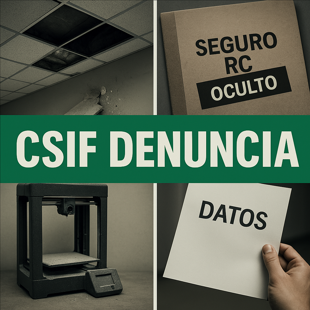 Desde CSIF llevamos años alertando de esta falta de transparencia en la gestión de datos, expedientes, del deterioro progresivo de las infraestructuras escolares, así como del comportamiento de determinados equipos directivos que actúan con total impunidad, amparados por la Consejería de Educación. Pero la Consejería sigue ignorado los hechos y las advertencias, optando por priorizar inversiones propagandísticas de capital político antes que aquellas de valor pedagógico, mientras los centros acumulan riesgos que comprometen la seguridad de toda la comunidad educativa.