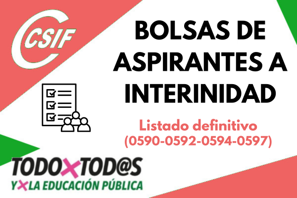 Bolsas de aspirantes a interinidad. Listado definitivo (0590-0592-0594-0597)
