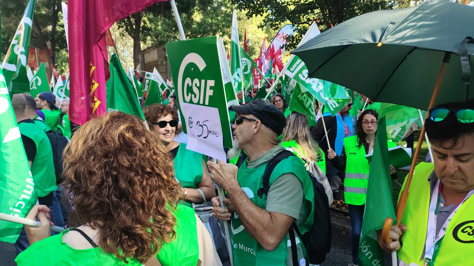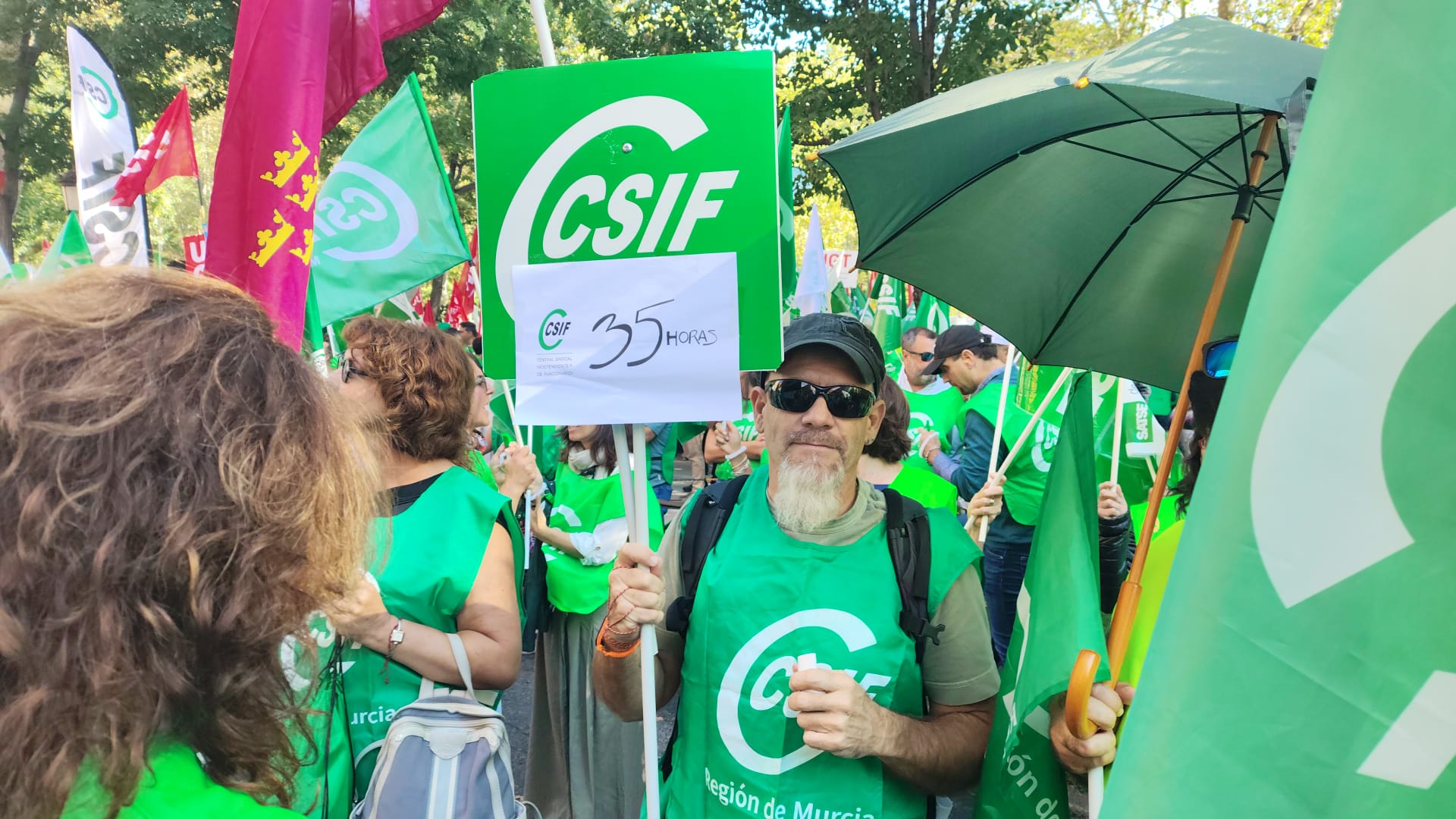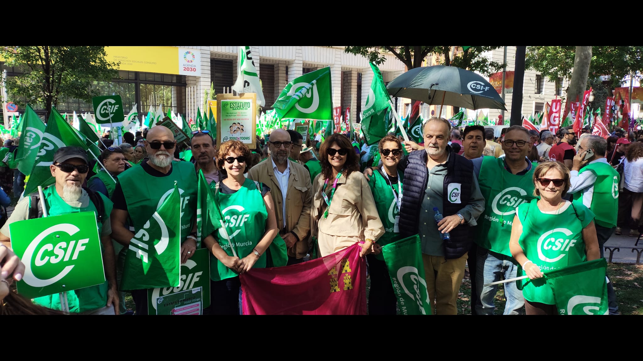 La Central Sindical Independiente y de Funcionarios (CSIF Región de Murcia), sindicato más representativo en las administraciones públicas y con presencia creciente en el sector privado, se ha sumado hoy a la gran concentración convocada por CSIF a nivel nacional frente al Ministerio de Sanidad en Madrid, con el objetivo de exigir un nuevo Estatuto Marco que garantice condiciones laborales justas y una Sanidad Pública de calidad, sostenible y digna para profesionales y ciudadanía.