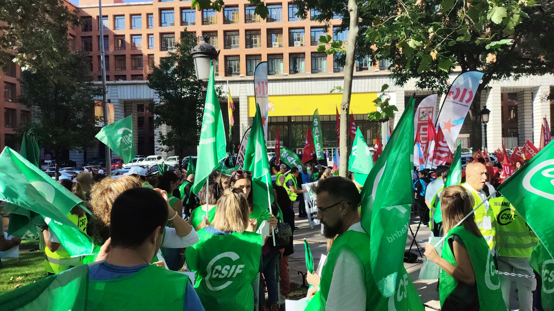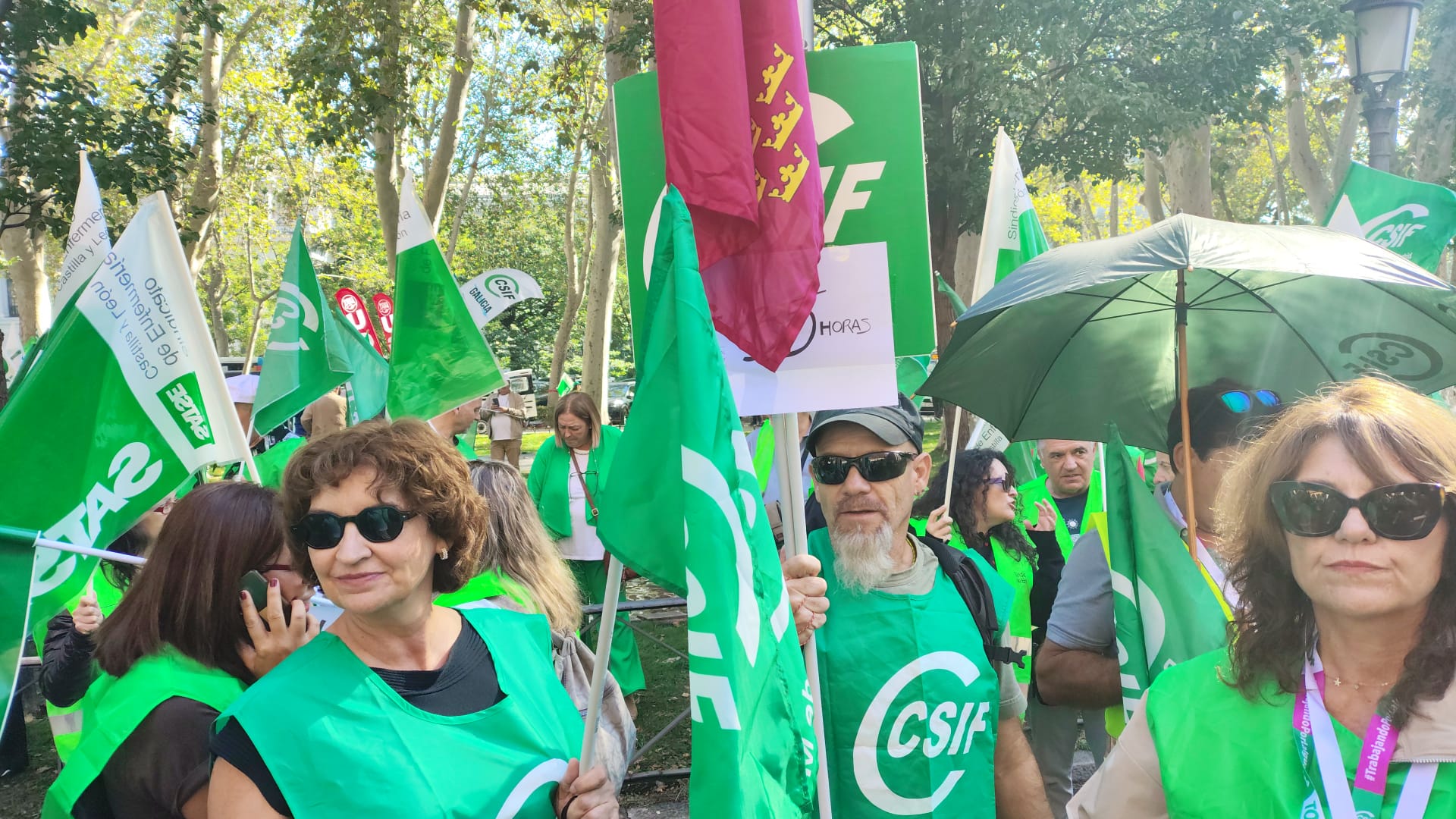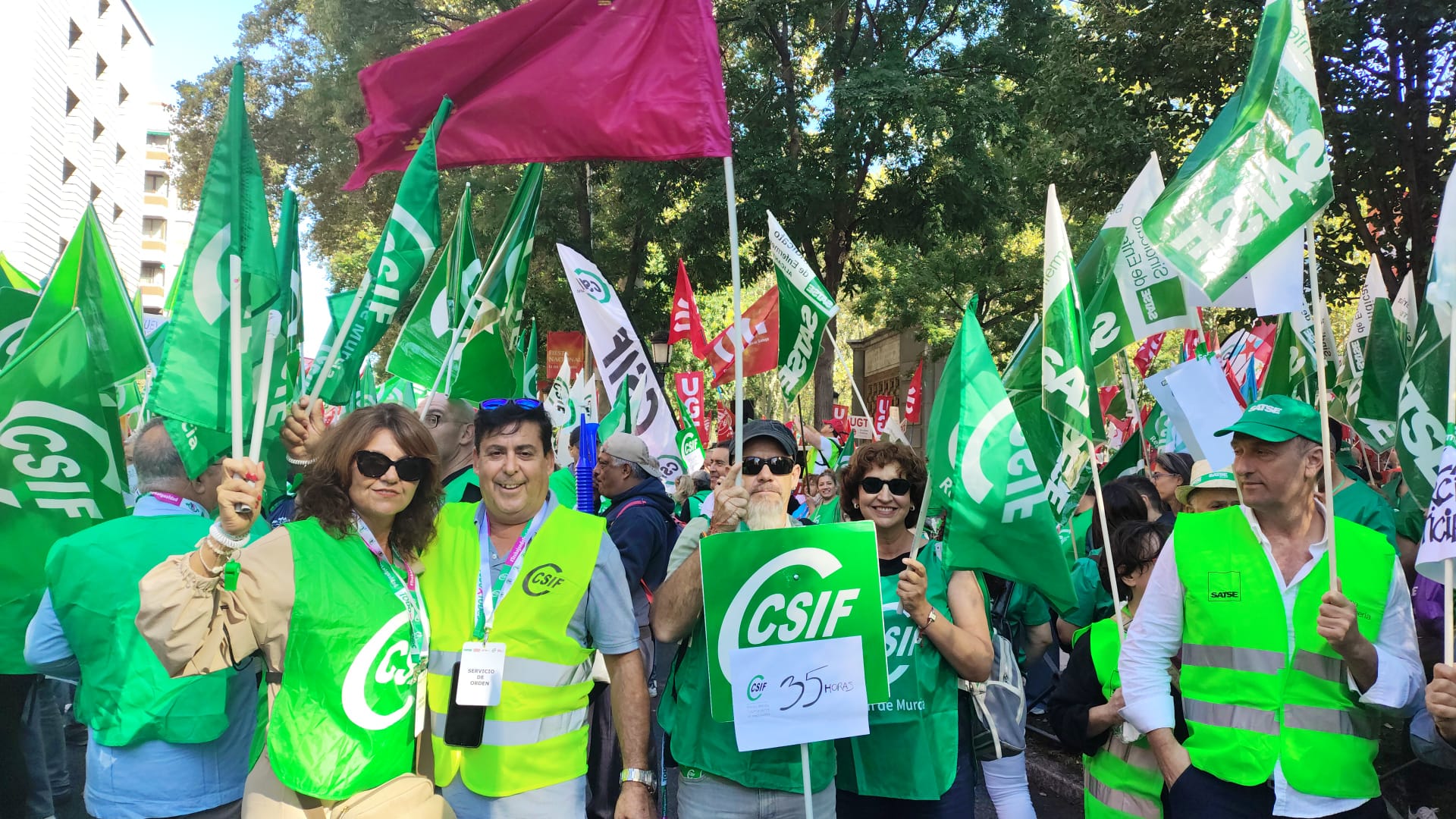 La Central Sindical Independiente y de Funcionarios (CSIF Región de Murcia), sindicato más representativo en las administraciones públicas y con presencia creciente en el sector privado, se ha sumado hoy a la gran concentración convocada por CSIF a nivel nacional frente al Ministerio de Sanidad en Madrid, con el objetivo de exigir un nuevo Estatuto Marco que garantice condiciones laborales justas y una Sanidad Pública de calidad, sostenible y digna para profesionales y ciudadanía.