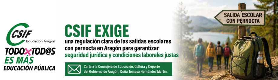 CSIF exige una regulación clara de las salidas escolares con pernocta en Aragón para garantizar seguridad jurídica y condiciones laborales justas.