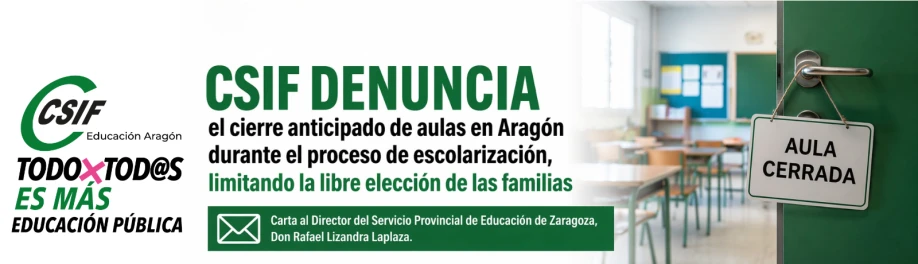 CSIF DENUNCIA el cierre anticipado de aulas en Aragón durante el proceso de escolarización, limitando la libre elección de las familias