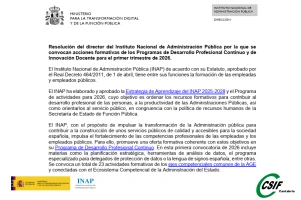 CSIF Cantabria informa del inicio de las acciones formativas del Programa de Desarrollo Profesional Continuo e Innovación docente (Primer trimestre 2026)