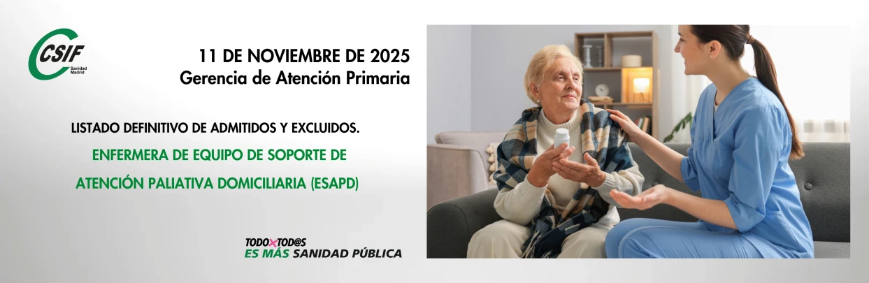 Listado definitivo de admitidos y excluidos. Enfermera de Equipo de Soporte de Atención Paliativa Domiciliaria (ESAPD)