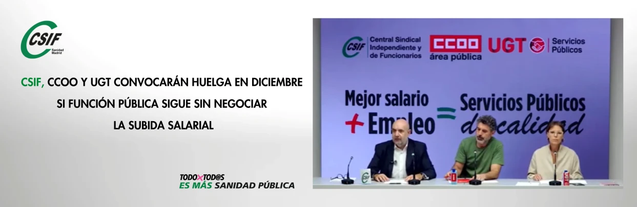 CSIF, CCOO y UGT convocarán huelga en diciembre si Función Pública sigue sin negociar la subida salarial