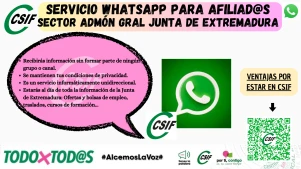 Servicio WhatsApp Para Afiliad@s del Sector de Admón. General de la Junta de Extremadura