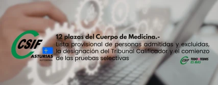 12 plazas del Cuerpo de Medicina.- Lista provisional de personas admitidas y excluidas, la designación del Tribunal Calificador y el comienzo de las pruebas selectivas
