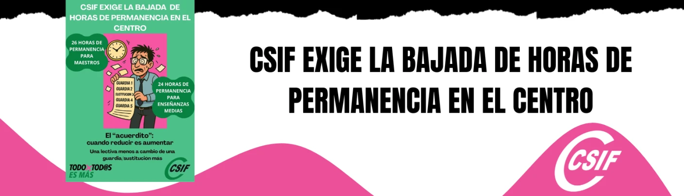 CSIF EXIGE LA BAJADA DE HORAS DE PERMANENCIA EN EL CENTRO