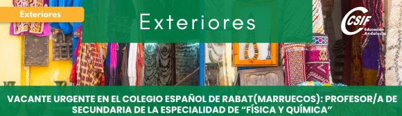 Vacante Urgente en el Colegio Español de Rabat(Marruecos): Profesor/a de Secundaria de la Especialidad de “FÍSICA Y QUÍMICA”