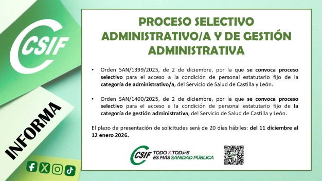 Se convoca proceso selectivo para el acceso a la condición de personal estatutario fijo de la categoría de Administrativo/a y de Gestión Administrativa.
