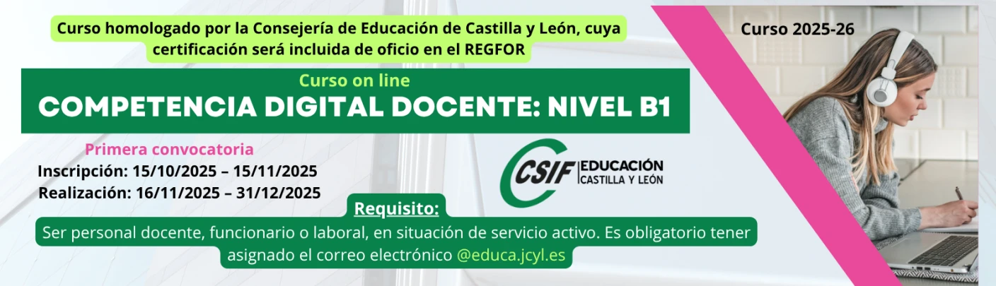 Curso: Competencia Digital Docente. Nivel B1. Todas las áreas. Homologado por la Consejería de Educación de CyL.