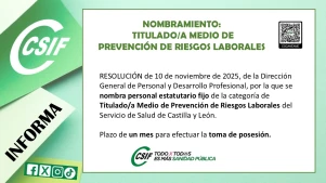 Nombramiento de personal estatutario fijo: Titulado/a Medio de Prevención de Riesgos Laborales.