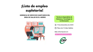 Convocatoria de proceso selectivo para la constitución de LISTA DE EMPLEO SUPLETORIA (Gerencia de Servicios Sanitarios del Área de Salud de El Hierro)