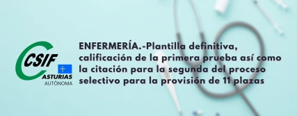 ENFERMERÍA.-Plantilla definitiva, calificación de la primera prueba así como la citación para la segunda del proceso selectivo para la provisión de 11 plazas