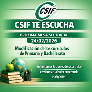 MS 24-2-2026.-Convocada mesa sectorial para tratar la modificación de los currículos de Primaria y Bachillerato