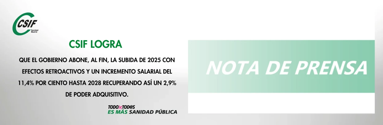 CSIF logra que el Gobierno abone, al fin, la subida de 2025 con efectos retroactivos y un incremento salarial del 11,4% por ciento hasta 2028 recuperando así un 2,9% de poder adquisitivo