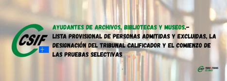 Ayudantes de Archivos, Bibliotecas y Museos.- Lista provisional de personas admitidas y excluidas, la designación del Tribunal Calificador y el comienzo de las pruebas selectivas
