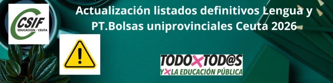 Actualización listados definitivos PES Lengua y Maestros PT. Bolsas uniprovinciales Ceuta 2026