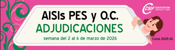 Interinos PES y otros cuerpos: Curso 2025-2026. AISI semana del 2 al 6 de marzo de 2026. Adjudicaciones.