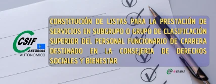 CONSTITUCIÓN DE LISTAS PARA LA PRESTACIÓN DE SERVICIOS EN SUBGRUPO O GRUPO DE CLASIFICACIÓN SUPERIOR DEL PERSONAL FUNCIONARIO DE CARRERA DESTINADO EN LA CONSEJERIA DE DERECHOS SOCIALES Y BIENESTAR