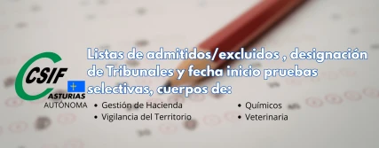 Cuerpos de: Gestión de Hacienda/ Vigilancia del Territorio/ Químicos/ Veterinaria.- Listas de admitidos/excluidos , designación de Tribunales y fecha inicio pruebas selectivas