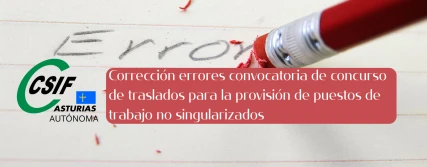 Corrección errores convocatoria de concurso de traslados para la provisión de puestos de trabajo no singularizados