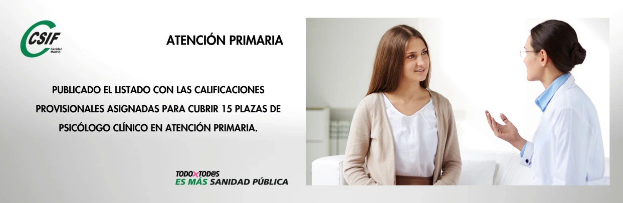 Publicado el listado con las calificaciones provisionales asignadas para cubrir 15 plazas de Psicólogo Clínico en Atención Primaria.
